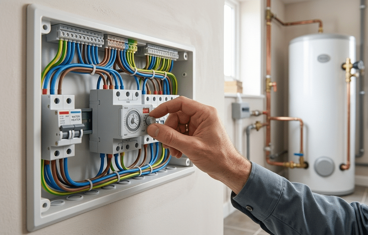 Un ballon d’eau chaude de 100 litres fonctionne typiquement 24 heures sur 24 sans programmation. En l’équipant d’une horloge modulaire, vous concentrez le chauffage aux heures creuses, là où le tarif électrique chute de 0,25 €/kWh à environ 0,18 €/kWh. Sur un an, cette différence représente des économies substantielles pour un foyer moyen.
