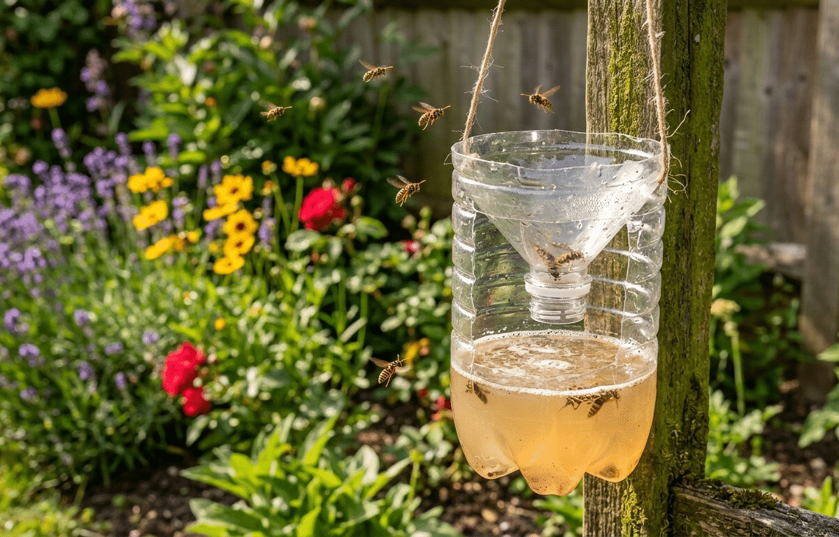 Le piège à liquide vaisselle capture indifféremment guêpes, frelons et mouches. Pour préserver les abeilles, évitez les appâts trop sucrés près des zones de floraison et privilégiez les protéines animales qui n’attirent pas ces pollinisateurs essentiels.